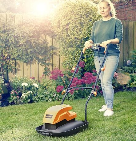 It is designed with comfort in mind, with foam-covered handles and dual switch levers for ease of operation. The mower is lightweight and compact, able to be stored folded on the floor or hung up on the wall. Built-in cable hooks keep your cord tidy and tangle-free for easy setup and storage. With ease of use, efficiency, and practical design at their forefront, LawnMaster offers a reliable yet very affordable hover mower under £100 for gardeners.