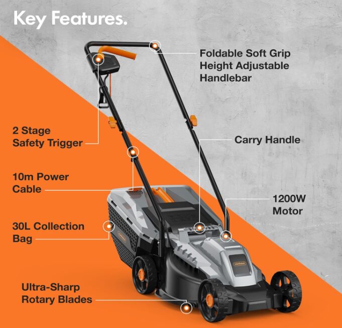 #3, VonHaus Lawnmower 1200W Electric Corded Lawn Mower