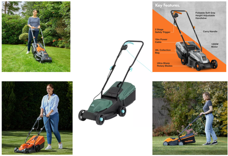 - The LawnMaster 1200W brings torque, a 32 cm cutting width, and that classic striped finish via its rear roller — quite an impressive feature at this price point.