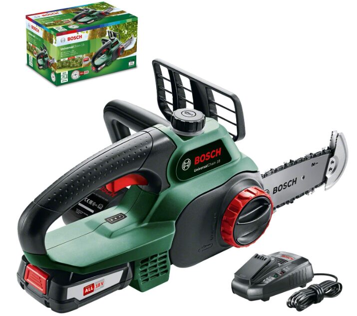 This is not the saw you buy for taking down large trunks, but for the homeowner that wants a lightweight, no-nonsense cordless tool from a brand with decades of reliability behind it, the Bosch UniversalChain 18 is a solid pick at under £200.