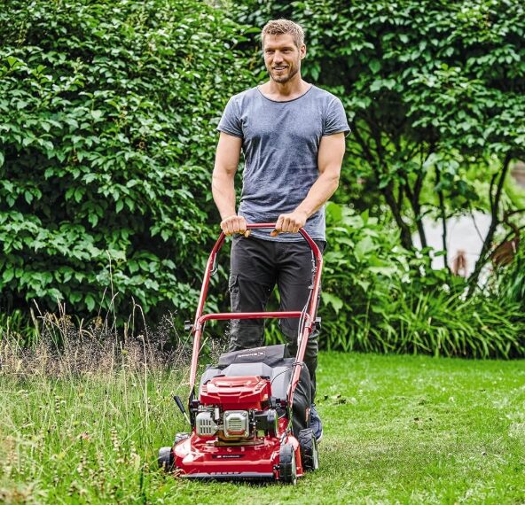 If you want something with a bit more muscle for bigger gardens and chunkier hills, the Einhell 46 cm self-propelled mower steps in like a gym enthusiast who actually knows what they are doing. Priced between £250 and £300, it is firmly in the mid-range category, but what you get for the money is genuinely impressive, especially if your lawn is closer to a field than a patch.