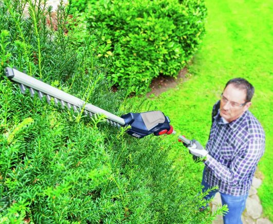Performance-wise, this trimmer packs a punch. The 20V lithium-ion battery offers as long as 40 minutes of run time, enough to get through most suburban hedge-jungle sessions; a fast one-hour recharge means you are not waiting around. With hardened steel blades in a dual-action configuration, these 45-cm-long blades with aluminium support will cut cleanly through branches up to 14 mm thick. Vibration is kept in check for more comfortable trimming.