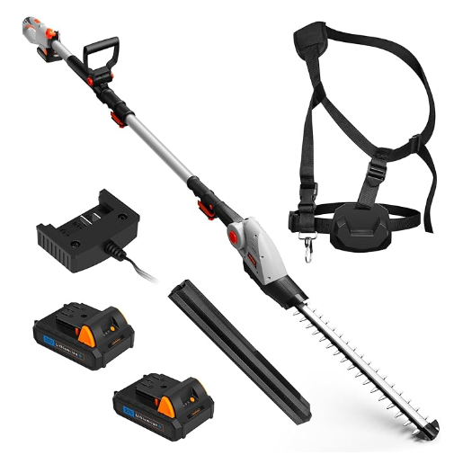 The 20V 2.0Ah lithium battery provides up to 50 minutes of runtime, making it one of the better performers in the budget category, with a quick 60-minute recharge. Overall, this long-reach hedge trimmer is seriously capable, offering premium-style reach at a budget-friendly price.