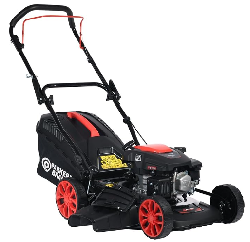 If the Mountfield is the polite and sensible mower, the ParkerBrand 17 inch 150cc is the one that says, bring it on. With a beefier 150cc four-stroke engine and a wider 17-inch cutting deck, it's built for those who like a bit of muscle behind their mow. But for all that power increase, this mower is surprisingly light to control, making it a great pick for homeowners who want performance without the price tag or the backache.