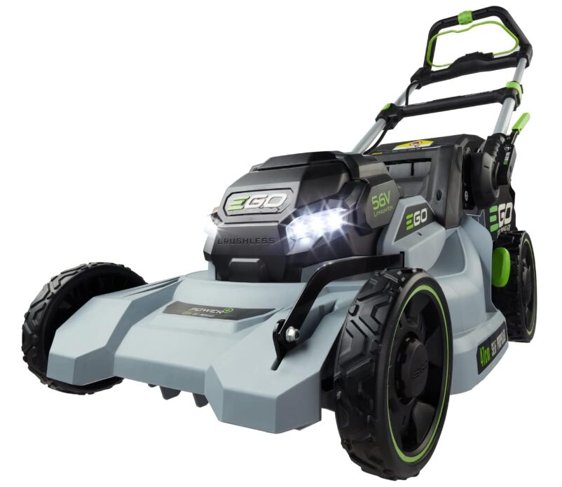 Where this mower really charms you is in actual use. The self-propelled drive adjusts automatically, giving you the odd but pleasant sensation that the lawnmower is doing the thinking. Cutting height changes are instant, the 55-litre grass collector is sturdy but easy to empty and the polymer deck keeps the weight down without feeling flimsy. Even LED headlights were included by EGO, because apparently mowing at dawn is a lifestyle now.