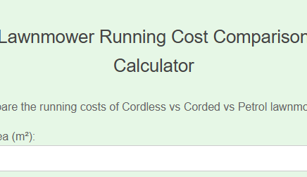 Use this cost-per-mow calculator to compare cordless, corded and petrol lawnmowers. Enter lawn size, mowing time and energy prices to see the true cost of each mow and annual mowing […]