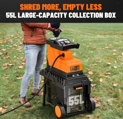 With a 55L safety-locked collection box, fewer trips to empty means more time shredding and less time pacing the garden muttering “why did I let it get this bad?” Large wheels and a steel frame make this shredder easy to move, while overload protection ensures it won’t sulk mid-task.