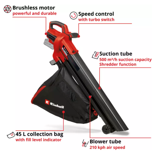 Adding a cherry on top of an already tempting piece of cake, it’s fitted with a 45L collection bag so big you might forget what stopping to empty it even feels like. And if you're an eco-warrior at heart, this tool’s stunning shredding feature mulches down leaves to a 10:1 ratio, making composting not just simple but super satisfying.