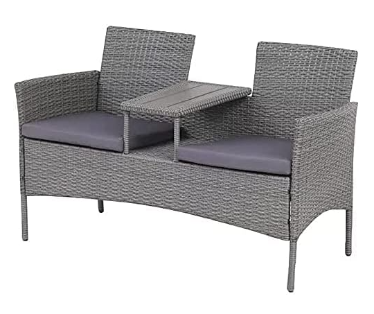 This charming companion bench gives you two comfortable seats with a built in wood effect table in the middle, perfect for morning coffee, evening chats, or passive aggressive silent relaxation with your partner. Ideal for gardens, patios, balconies, conservatories and even small cafés, it is a compact and attractive upgrade that instantly makes any space look more inviting.