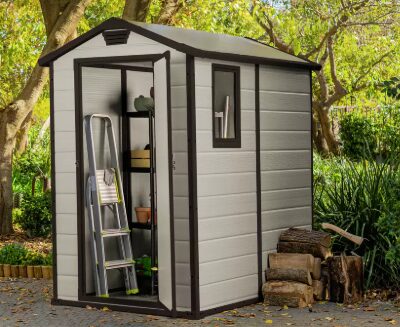 This sturdy little number comes with a wood-like texture that gives all the charm of timber without the maintenance, splinters or the annual guilt trip of not re-staining it. Made from durable resin, weather resistant and fade-free, it is the kind of shed that minds its own business while quietly making your garden look far more organised than you actually are.