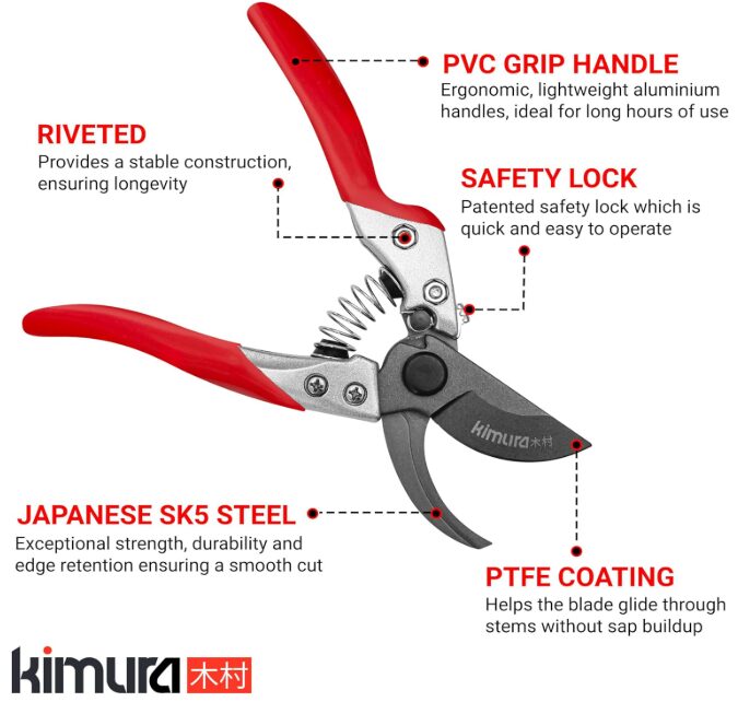 The Kimura 8" Pro Bypass Secateurs are now under £22 for Black Friday. Japanese SK5 steel blades, ergonomic handles, low-friction coating and a lifetime warranty.