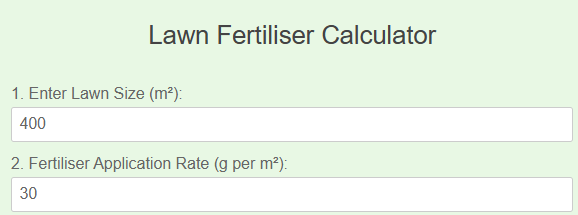 Quickly calculate how much lawn fertiliser you need based on lawn size, application rate and number of yearly treatments. Includes bag quantities and yearly totals, perfect for accurate lawn feeding.