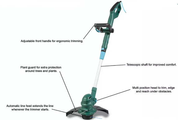 This trimmer's got some serious power under the hood. Sporting a 350W motor, it's the perfect match for dealing with overgrown areas and tackling tough spots in your garden. Whether it's weeds or just those tricky edge bits, this tool's got your back.