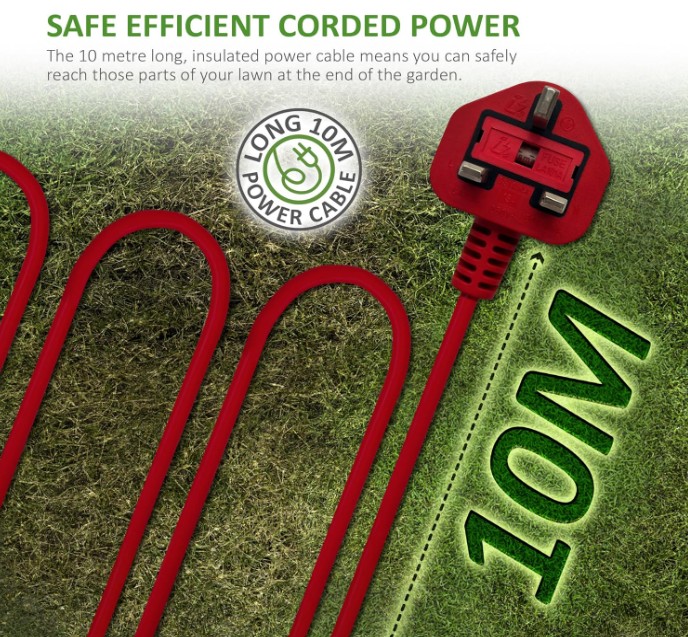 4, Corded design – extension lead often required for larger gardens